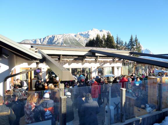 Jedes Wochenende wechseln sich internationale DJ's und Live-Bands ab und sorgen vom Mittag bis zum Sonnenuntergang für eine tolle Après-Ski-Atmosphäre auf der Terrasse. Unter der Woche kann man Wein und Austern genießen.