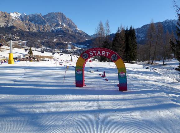 Cortina d'Ampezzo ist familien- und kinderfreundlich. Im Talbereich Socrepes gibt es die Kinderpiste mir einer eigenen Doppelsesselbahn und Förderband. Durch die vielen leichten Pisten in Talnähe können sich die Kleinen sicher austoben. Im Skigebiet selber gibt es kaum Einrichtungen für Familien und Kinder.