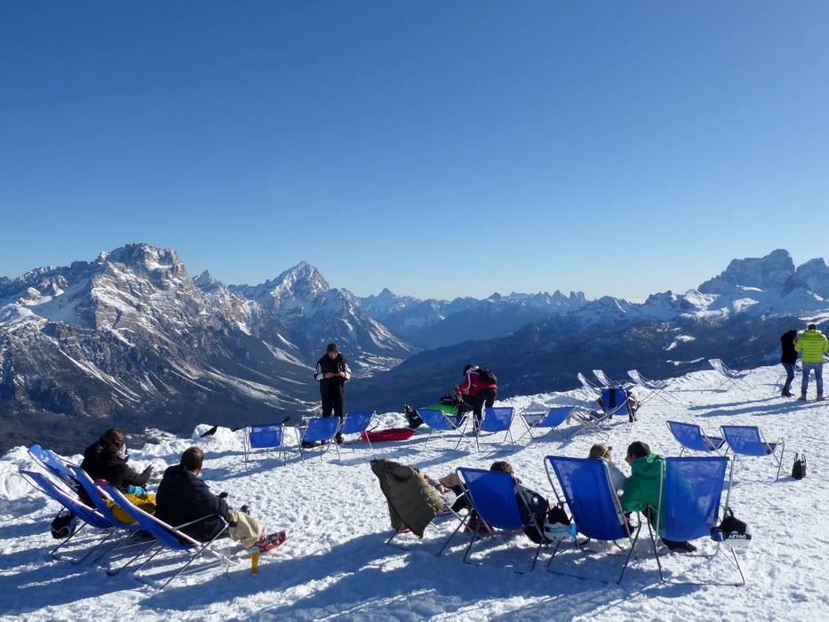 Gemütliche und exklusive Skihütten sind im gesamten Skigebiet von Cortina d'Ampezzo verteilt. Das Flair ist typisch italienisch und in vielen Hütten werden hochwertige Weine und Speisen serviert. Der Ausblick von den Sonnenterrassen auf die Dolomiten ist atemberaubend.