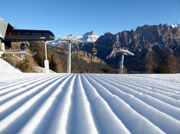 Im Skigebiet Cortina d'Ampezzo werden die Pisten täglich über Nacht optimal präpariert. Die Pisten sind entsprechend in einem tadellosen Zustand.