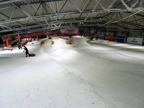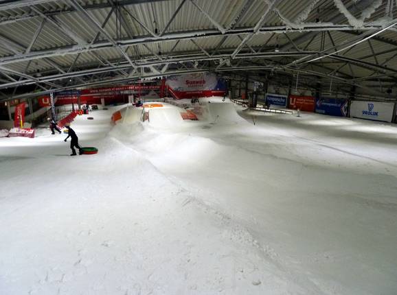 In der Skihalle befindet sich eine Tubingbahn. Diese ist mit den beiden Förderbändern zu erreichen. Highlight ist das Ende der Bahn. Hier fliegt man über eine Schanze in den BigAirBAG.
