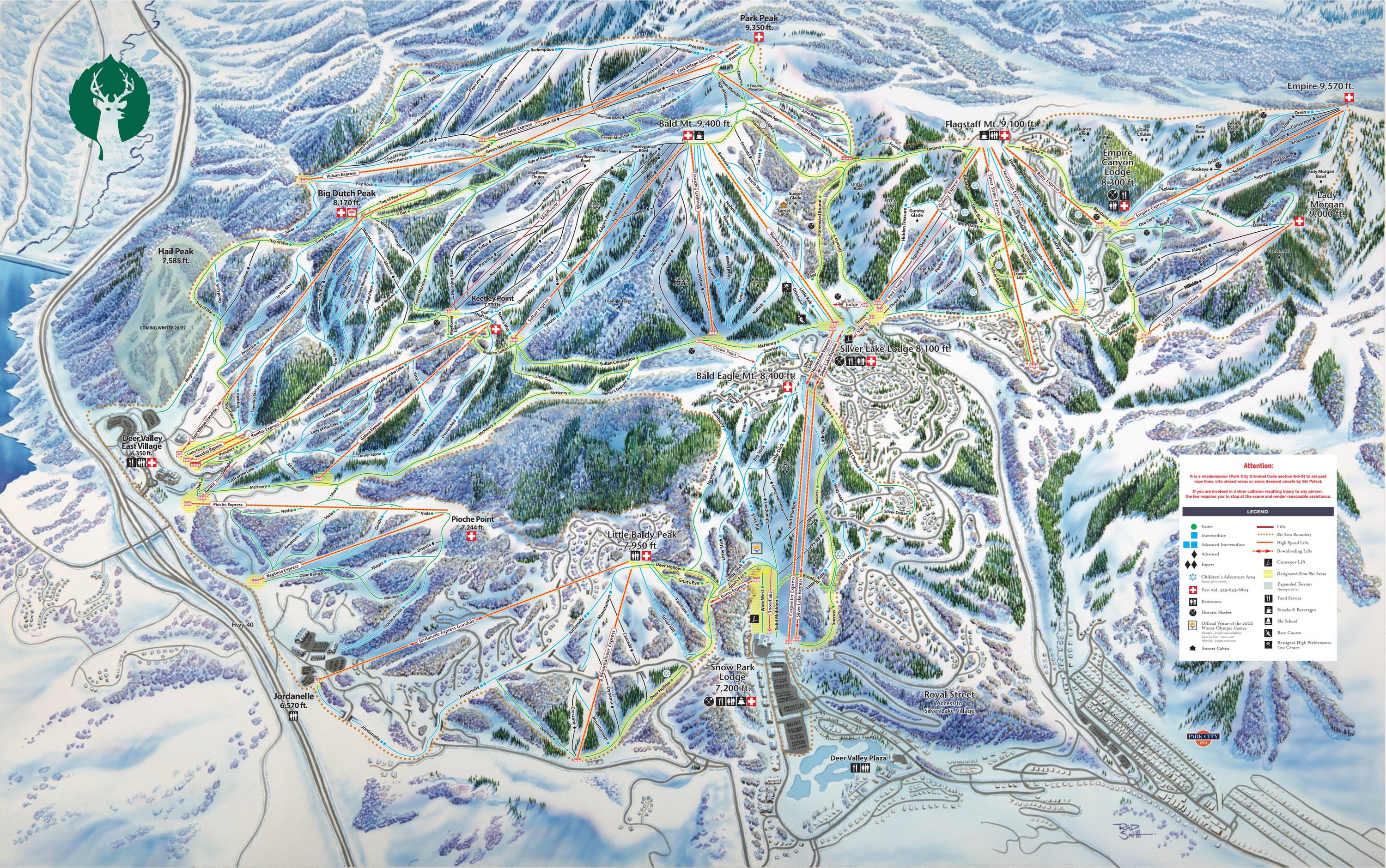 Orientierung (Pistenplan, Informationstafeln, Ausschilderung) und Sicherheit im Skigebiet Deer Valley