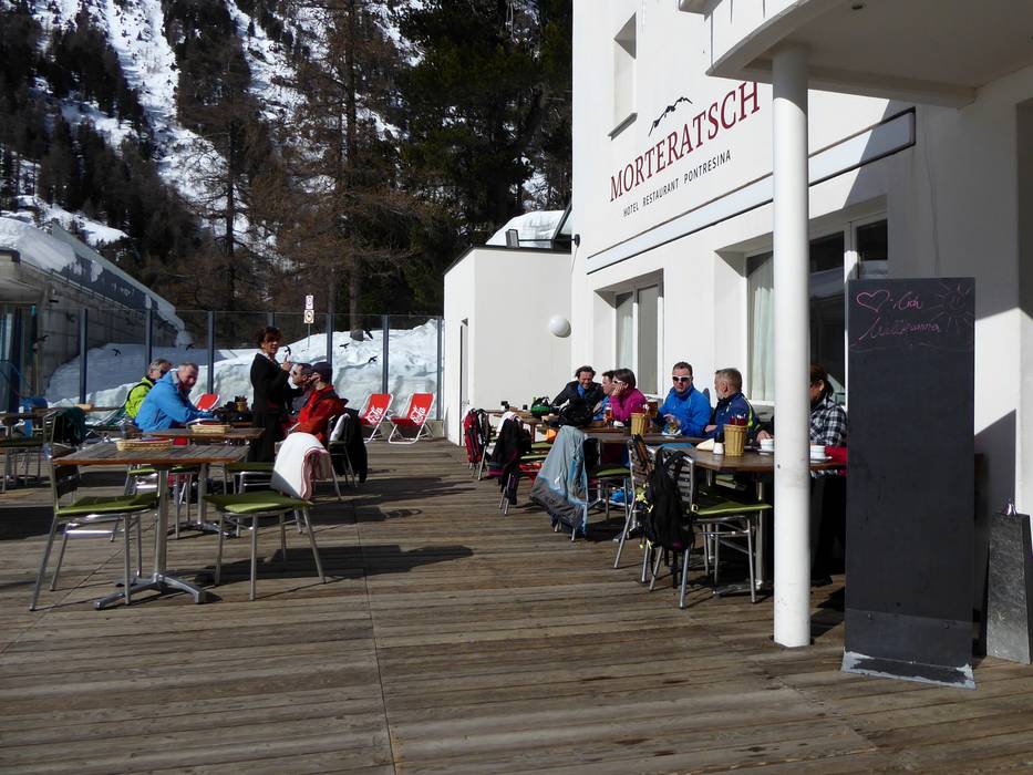 Das Restaurant Morteratsch liegt perfekt am Ende der längsten gesicherten Gletscherabfahrt der Schweiz. Hier kann man sich vorzüglich stärken, wenn man die 10 km lange Skiroute über den Morteratschgletscher gemeistert hat und auf die Rhätische Bahn nach Bernina-Diavolezza bzw. Bernina-Lagalb wartet.
