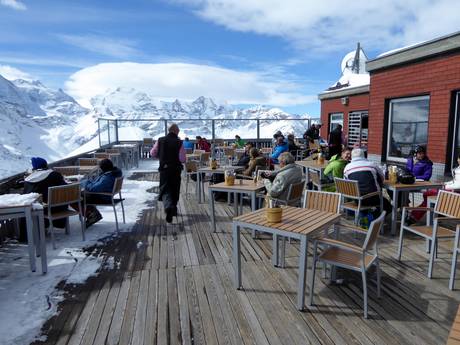 Das rustikale Restaurant mit der einmaligen Sonnenterrasse inmitten der Berge ist ein faszinierender Ort für einen Einkehrschwung. Hier kann man Kleinigkeiten aber auch Besonderes genießen.