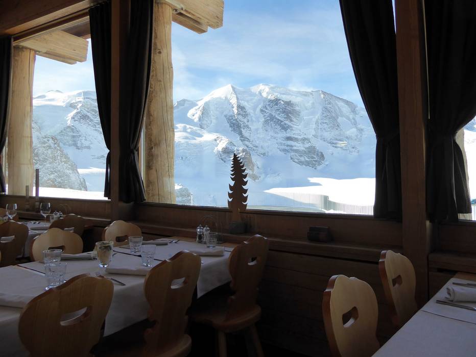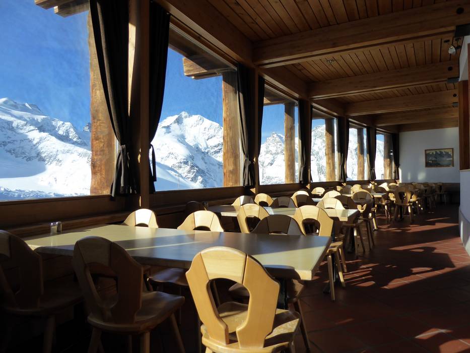 Atemberaubende Gletscherkulisse im Festsaal der Alpen! Der Blick auf Piz Bernina (4049 m) und Piz Palü (3900 m) ist einmalig. Das Berghaus bietet ein À-la-carte-Restaurant und einen Selbstbedienungsbereich. Die Gäste werden mit traditionellen, regionalen Bündner- und Veltliner-Spezialitäten oder Fastfood-Klassikern verwöhnt.