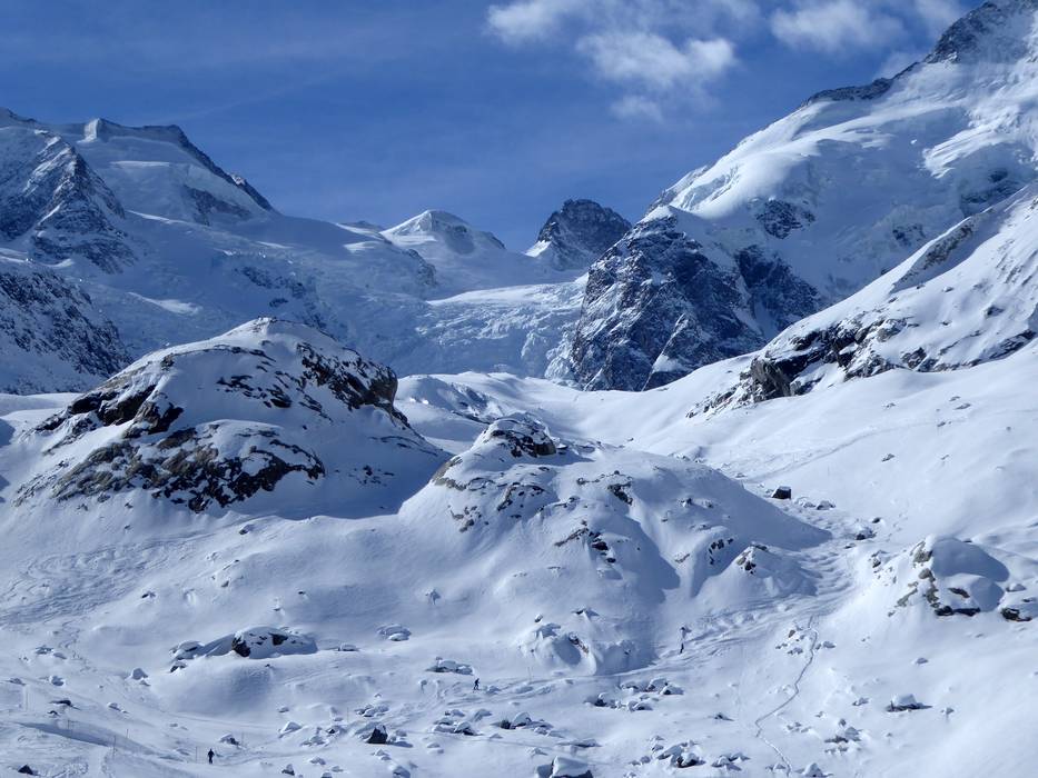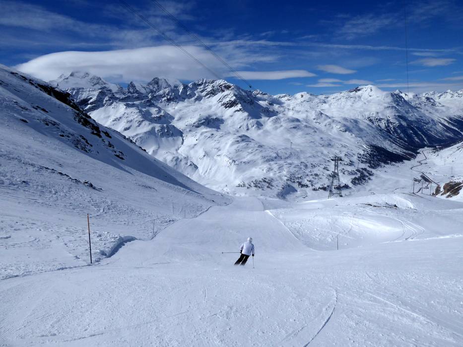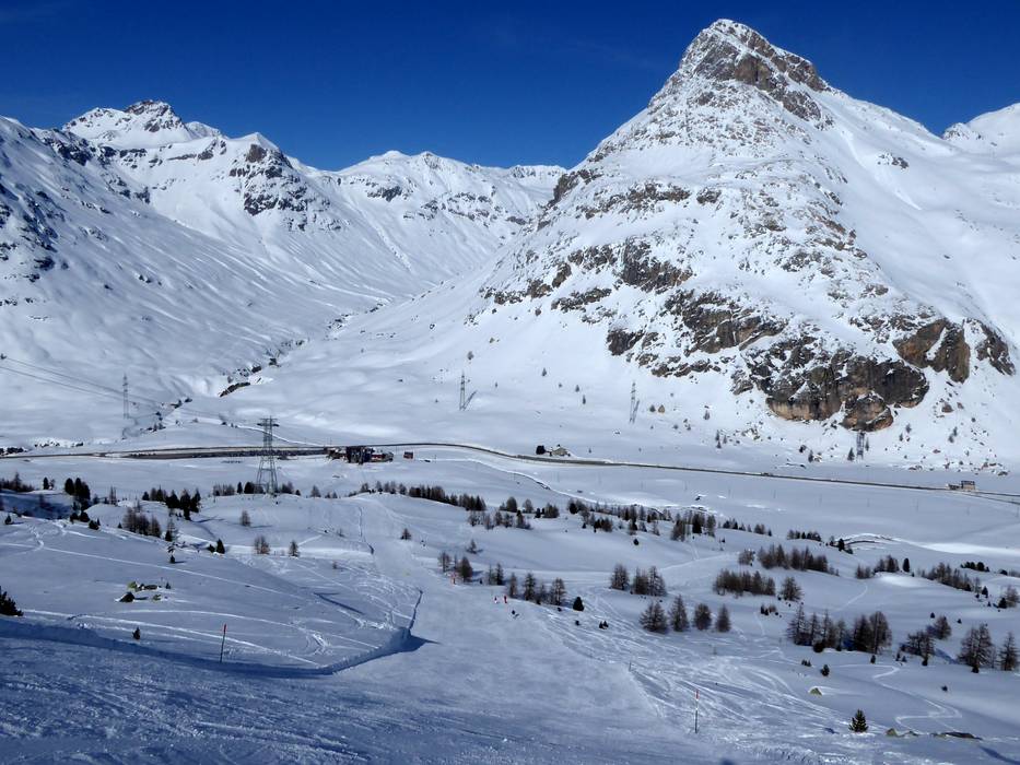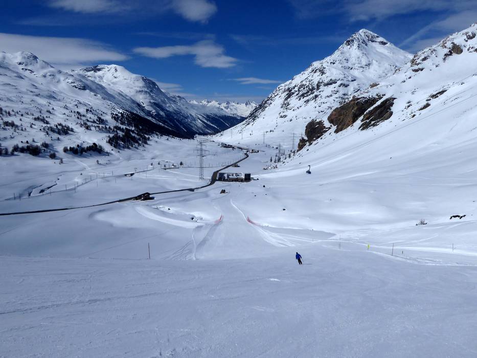 Die Talabfahrten führen zu den Luftseilbahnen Diavolezza und Lagalb.