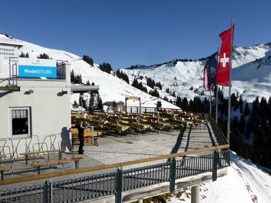 Im Skigebiet Schoppernau/Diedamskopf gibt es drei Einkehrmöglichkeiten am Berg sowie zwei im Tal. Die Bergrestaurants sind gepflegt und bieten reichlich Platz. Von der Terrasse des SB-Panoramarestaurants hat man einen herrlichen Gipfel-Blick.