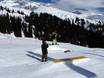 Ein kleiner Snowpark mit Kicker und Boxen steht für die Einstieger bereit.