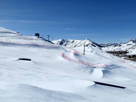 Das Skigebiet am Dollar Mountain in Sun Valley bietet eine große Auswahl an erstklassigen Snowparks. Ein Snow Cross Course rundet das Angebot ab.