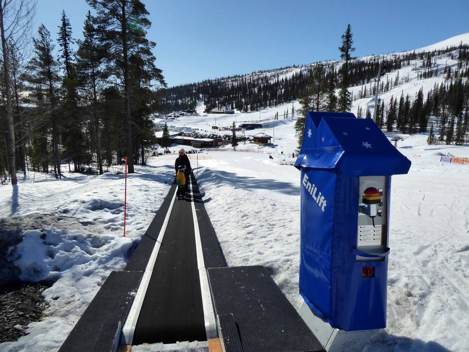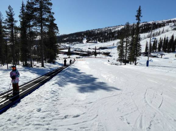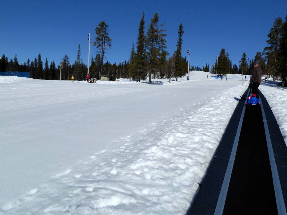 Direkt an der Talstation gibt es einen abgegrenzten Bereich mit einem Förderband. Hier können die Kleinen in aller Ruhe die ersten Schwünge üben oder eine Runde Schlitten fahren.
