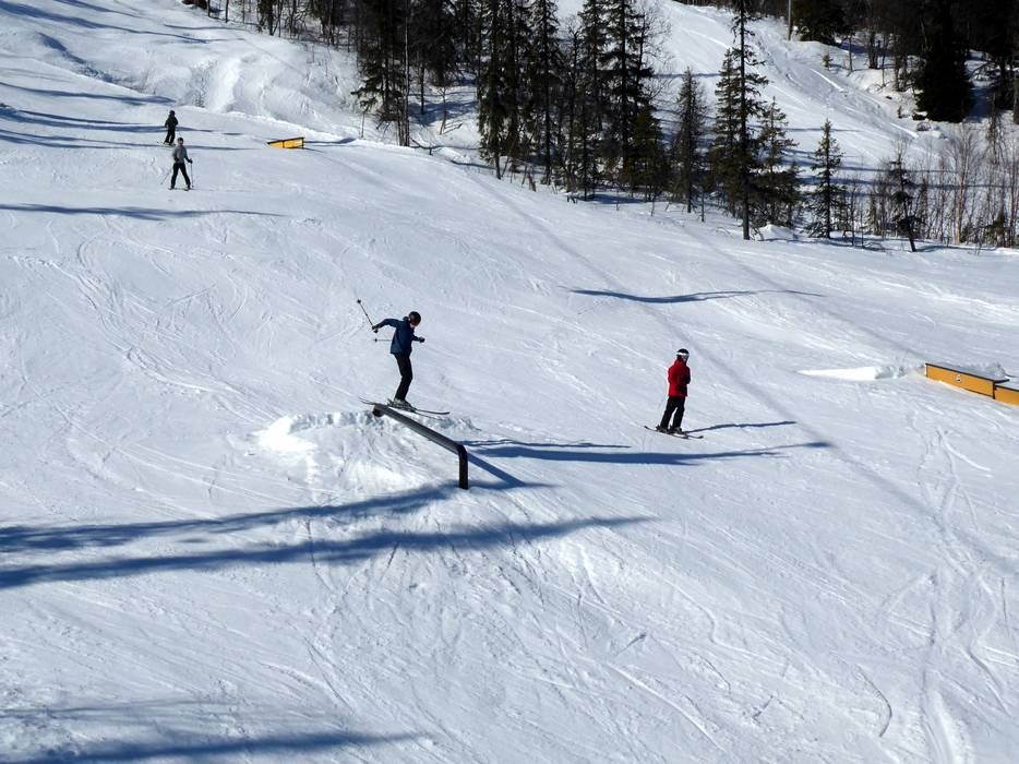Das Skigebiet Dundret Lapland bietet einen erstklassigen Snowpark im Talbereich an der Sechsersesselbahn.