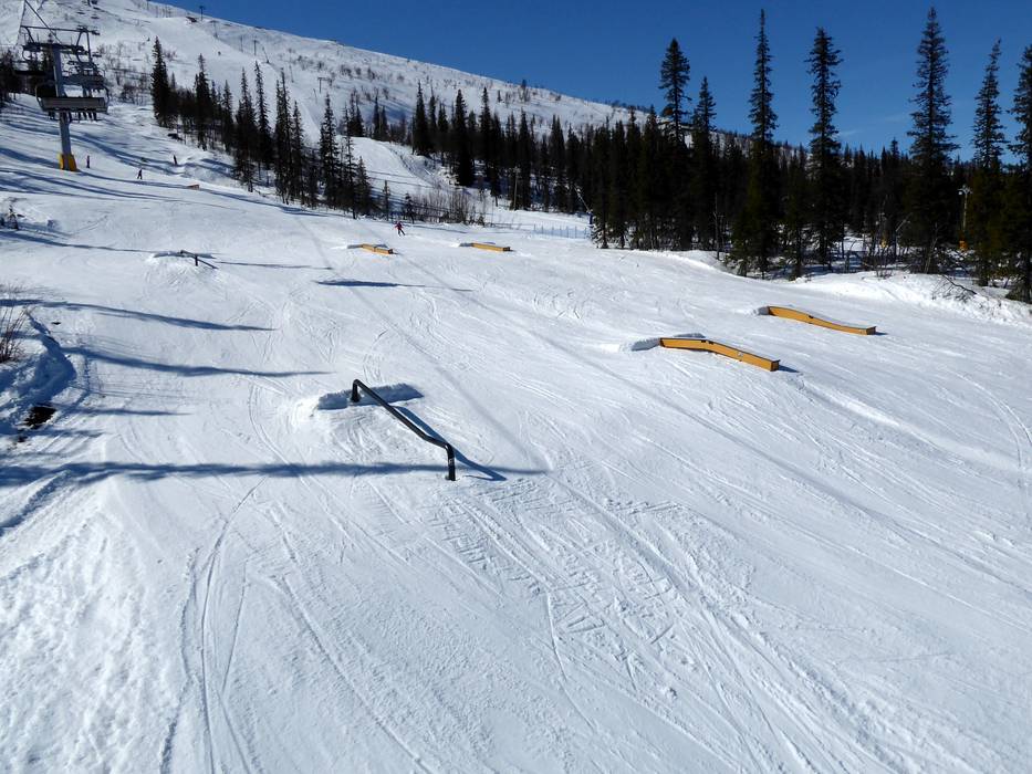 Der Dundret Lapland Snow Park befindet sich um unteren Bereich der Sechsersesselbahn und ist auch mit dem Schlepplift Mellanliften gut zu erreichen. Im oberen Teil findet man viele Obstacles, während im unteren Teil die großen Jumps warten. Hier kommen Könner und Anfänger voll auf ihre Kosten.