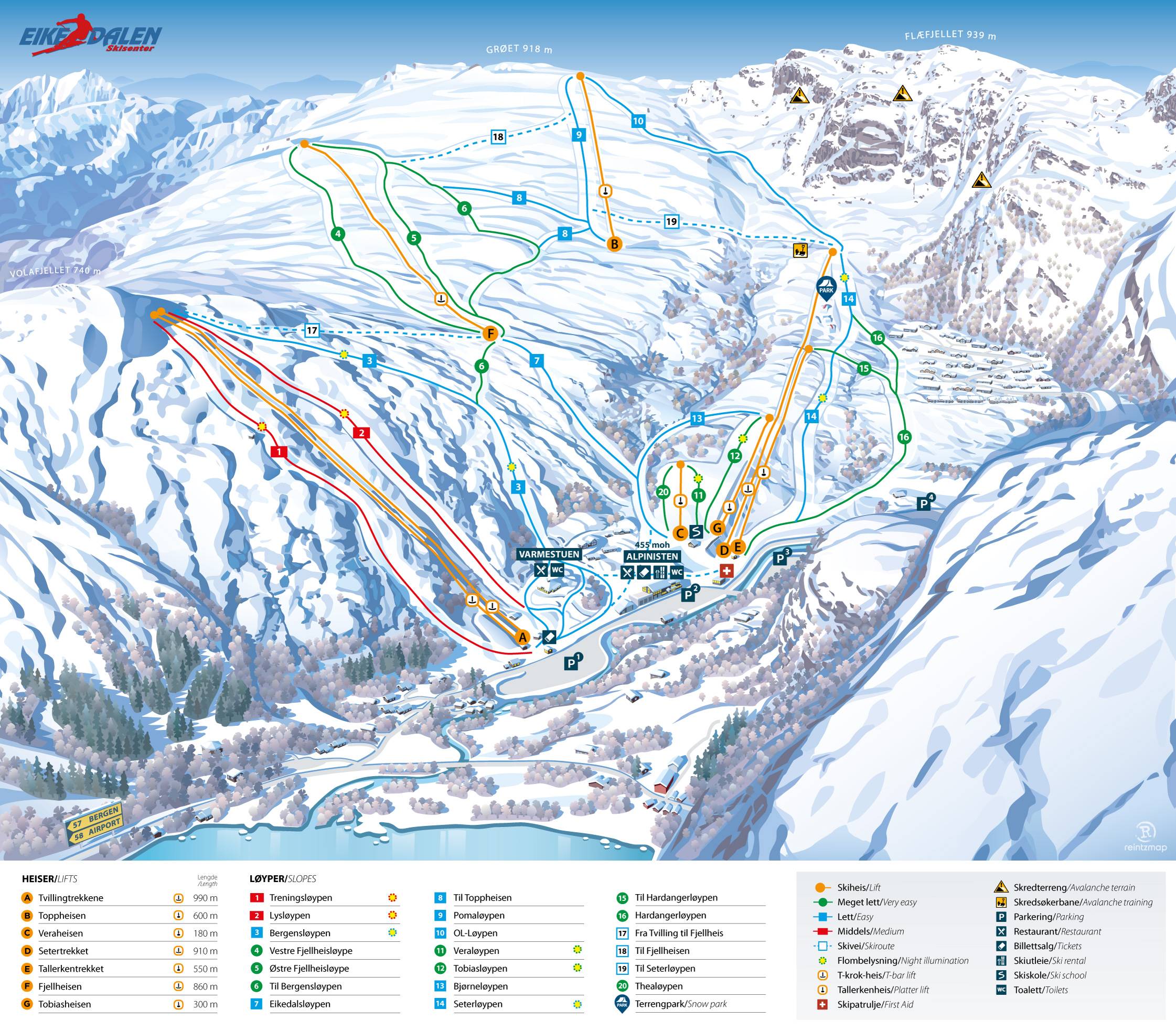 Eikedalen (1,9 km), Tysse (Samnanger) (14 km) Orte am Skigebiet