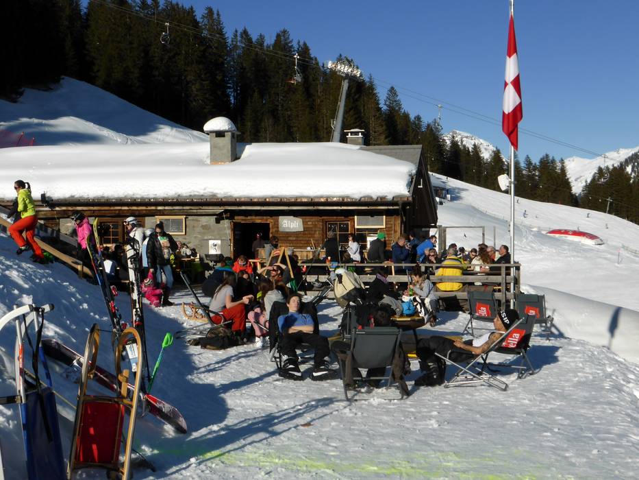 Die Aprés Ski-Bar Gitzihimmel ist in Elm sehr beliebt. Die Gäste kommen ab 15 Uhr und gegen 19 Uhr wird es wieder ruhiger.