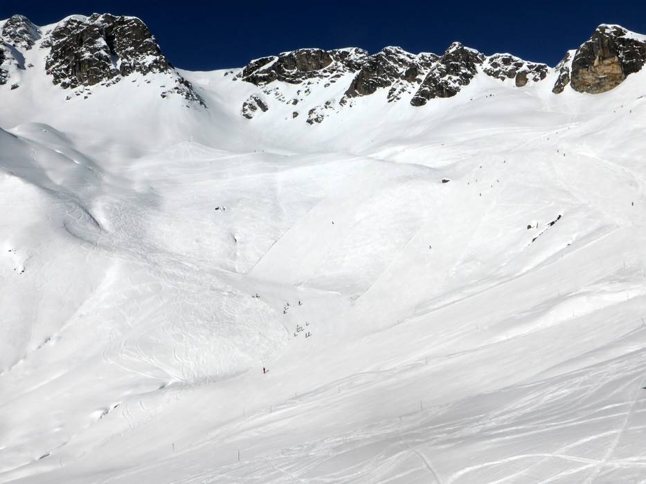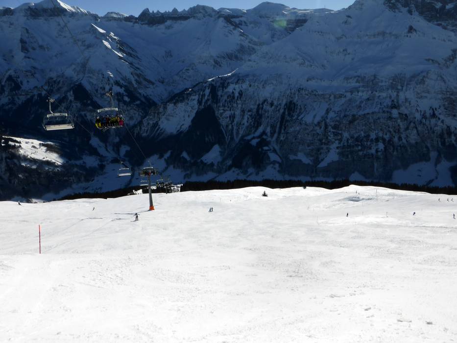 Vom höchsten Punkt im Skigebiet an der Doppelsesselbahn Pleus bin ins Tal nach Elm