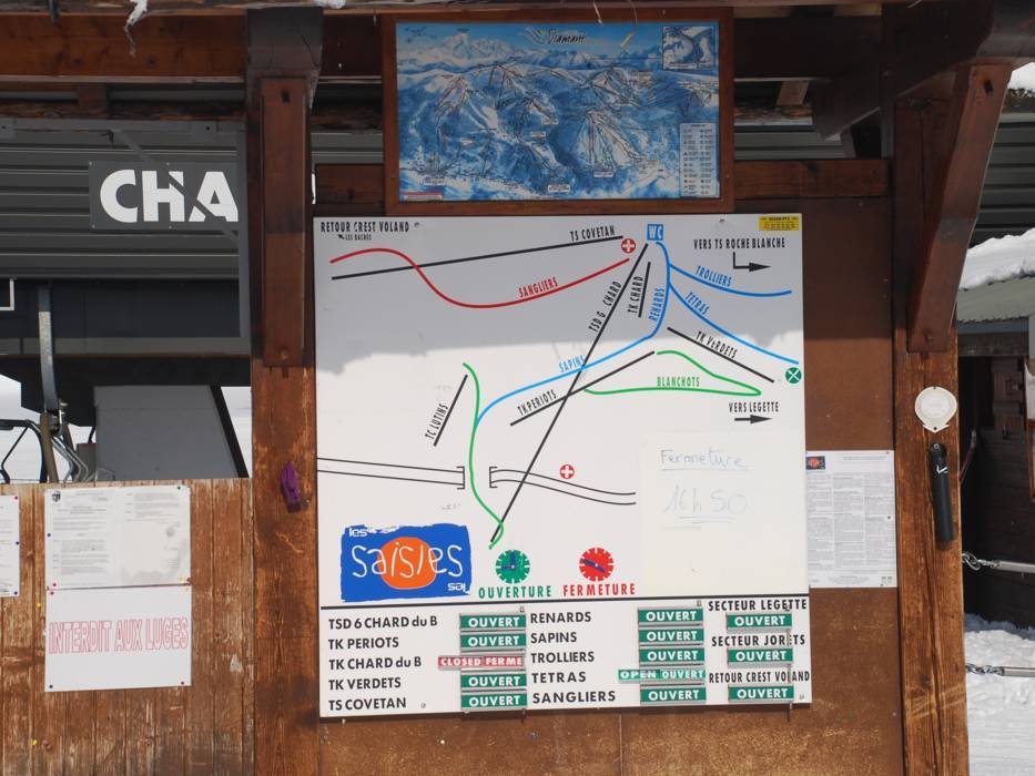 Hinweis: Die Öffnungszeiten sind generelle Angaben vom Skigebiet Espace Diamant – Les Saisies/Notre-Dame-de-Bellecombe/Praz sur Arly/Flumet/Crest-Voland und können je nach äußeren Bedingungen, Wochentagen, Schulferien und Feiertagen variieren.
