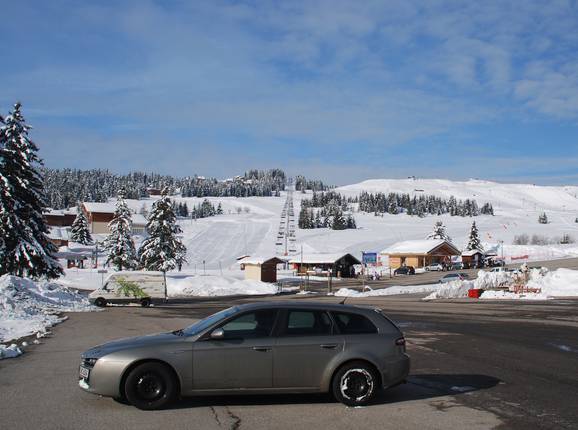 Die zahlreichen Einstiege sorgen dafür, dass man zügig auf die Pisten gelangt. Das Parken ist an den Liftstationen überall kostenlos, nur in der Ortsmitte von Les Saisies stehen Parkautomaten. Über Skiverleih und Skischulbüro verfügen sieben der elf Einstiege. Diese erreicht man von den nächsten Autobahnausfahrten nach 20 bis 35 Kilometer Fahrt über teils kurvige Land- und Bergstraßen. Von Annecy dauert die Fahrt eine gute Stunde.
