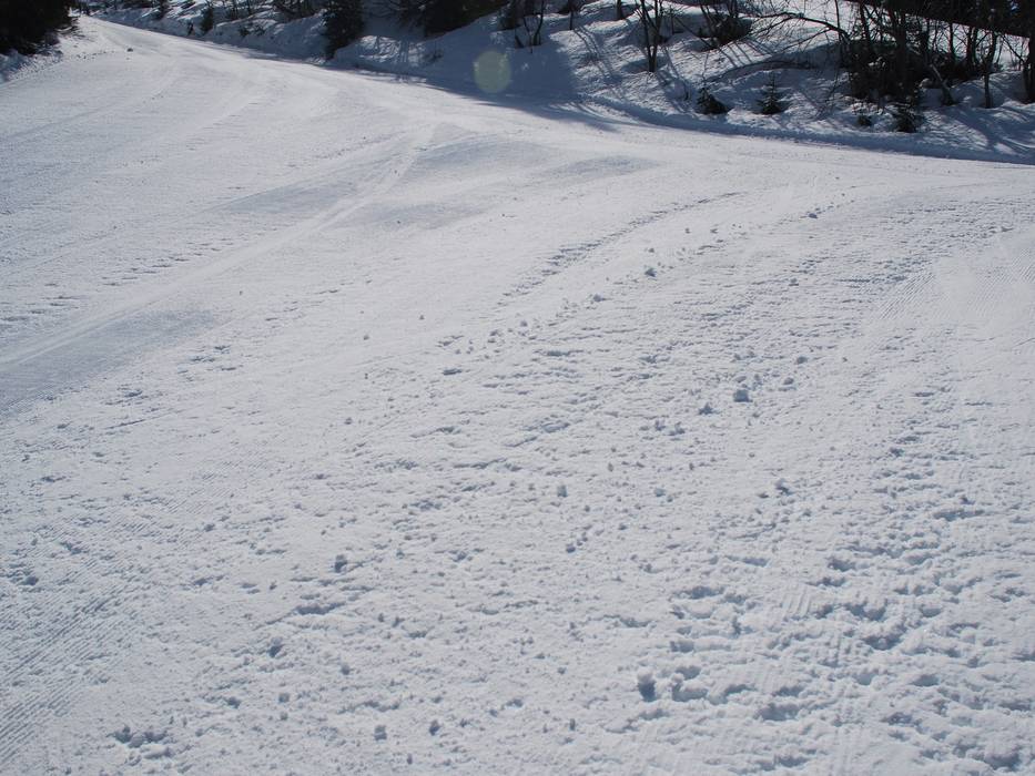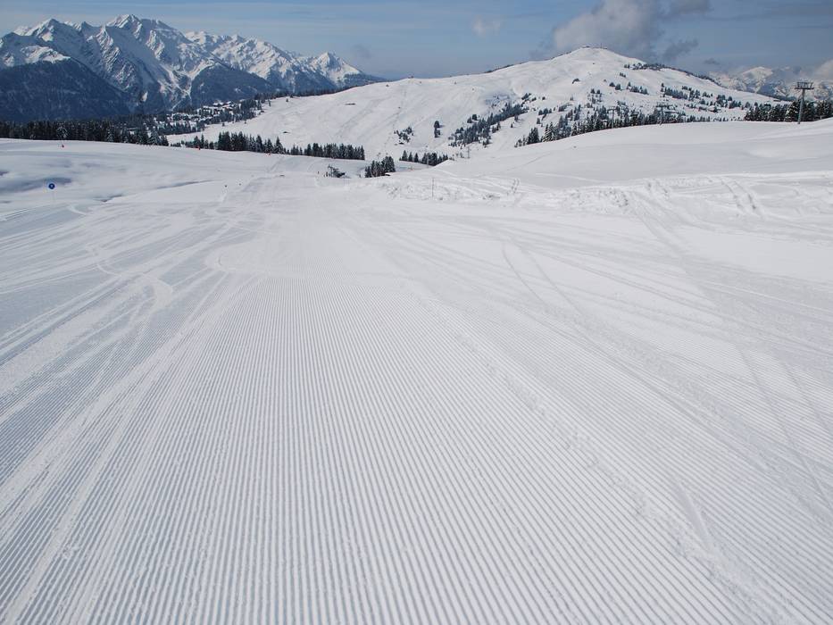 Nur ganz selten gibt es Stellen, die nicht optimal präpariert sind. Was den Pisten ebenfalls gut tut: Für seine Größe hat Espace Diamant eine verhältnismäßig geringe Förderleistung, daher sind die Pisten auch am Nachmittag noch nicht zerfahren. Einige Pisten werden nicht täglich gewalzt, das betrifft aber in der Regel nur schwarze Abfahrten.