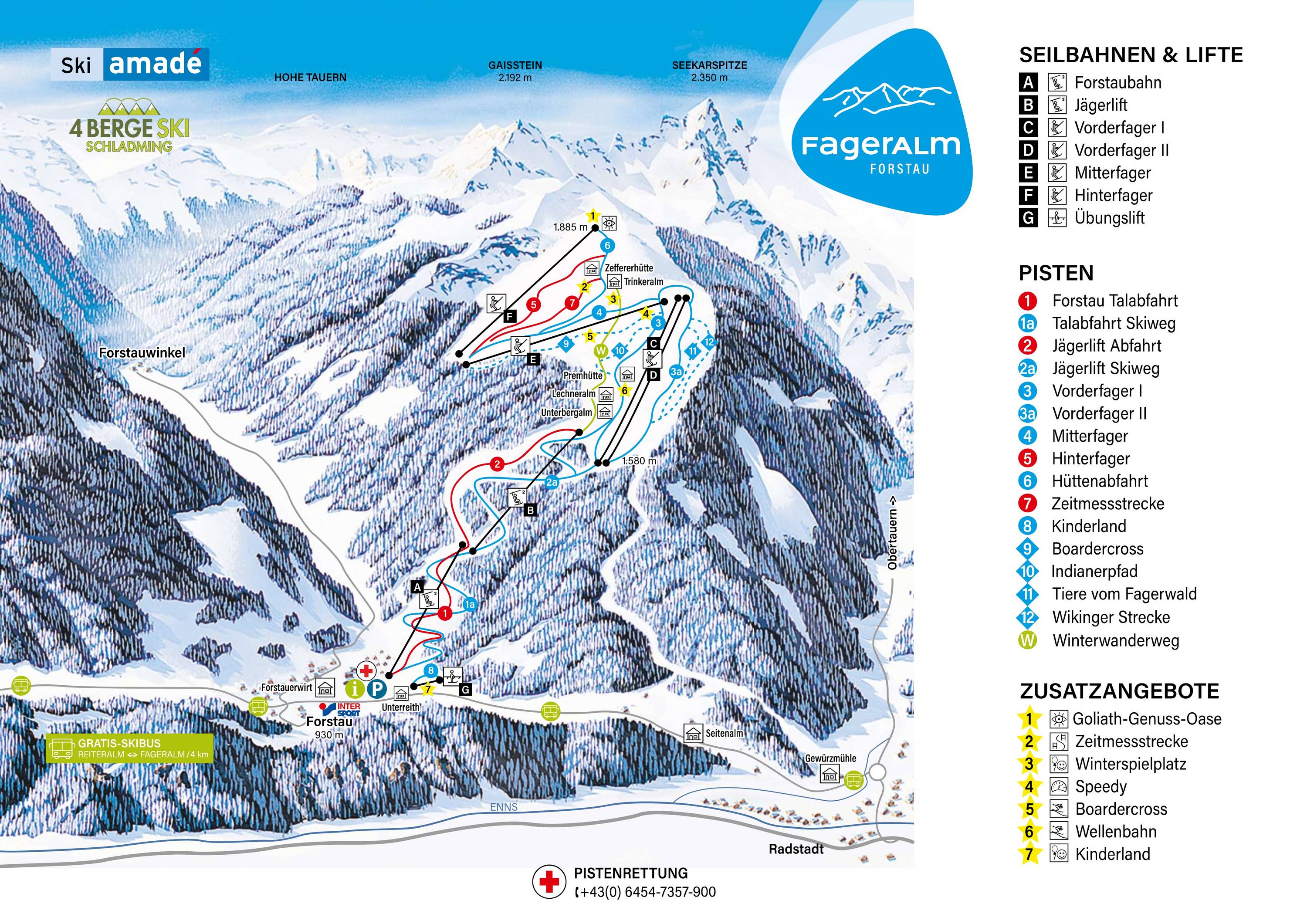 Pistenplan vom Skigebiet Fageralm – Forstau