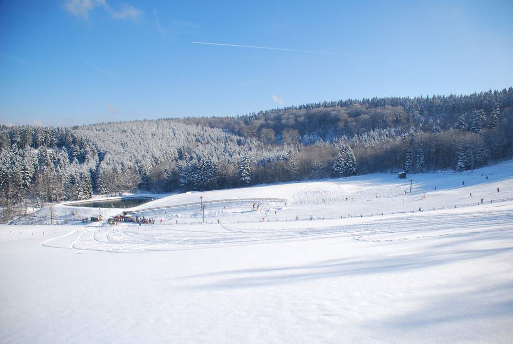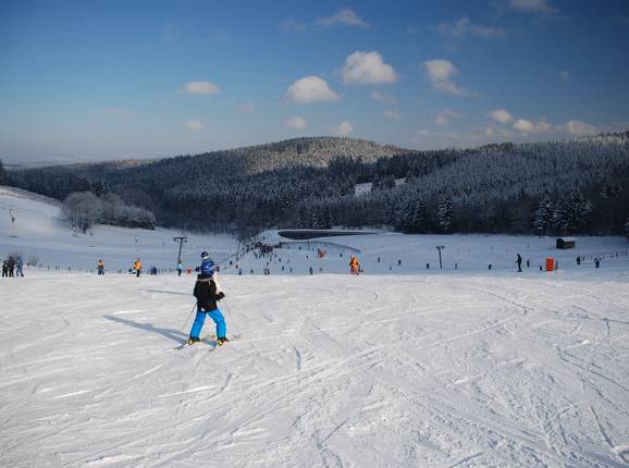 Klein aber nah – das bringt das Angebot des Skigebiets Fahlenscheid auf den Punkt. Wer aus Köln, Bonn, Siegen, dem Bergischen Land oder dem westlichen Sauerland kommt und nicht allzu weit fahren möchte für ein paar Abfahrten auf gut präparierter Piste, der landet früher oder später auf den breiten Hängen am 593 m hohen Steinbrink.