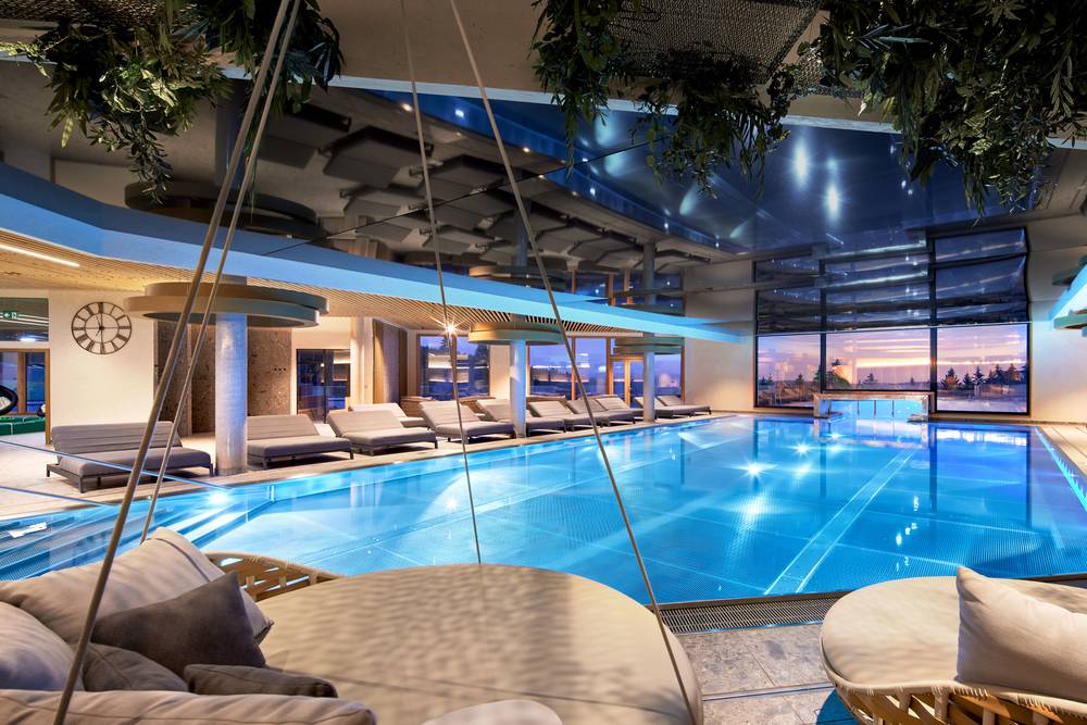 Die Badelandschaft ist kein typisches Hotel-Schwimmbad, sondern eher ein Erlebnisbad. Zahlreiche Rutschen inklusive einer 100 Meter langen Reifen-Wasserrutsche sowie einer rasanten Trichterrutsche begeistern. Der Infinity-Outdoor-Pool ermöglicht einen herrlichen Blick auf den Thüringer Wald. Mit dem Indoor-Pool und dem Kinder-Erlebnisbecken finden alle Kinder ihren perfekten Plansch-Spaß.