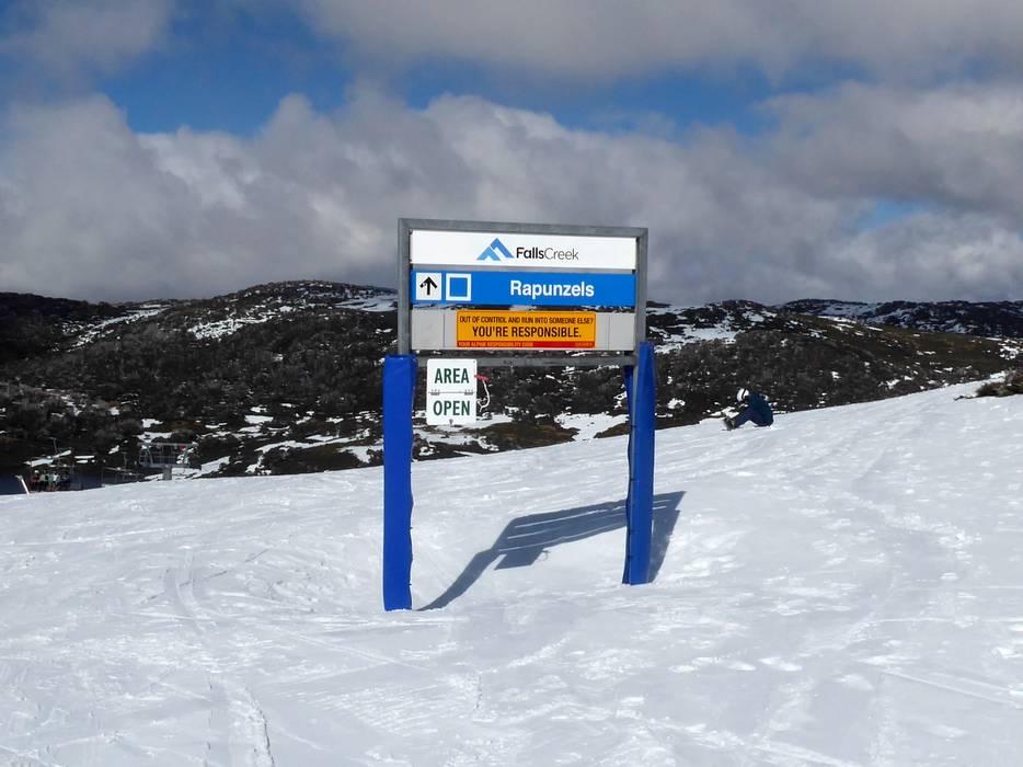 Die Pisten sind in Falls Creek gut ausgeschildert. Zudem findet man auch Pistenpläne im Skigebiet verteilt. Aktuelle Informationen findet man kaum. Diese sind nur noch per App abrufbar oder an der Kasse im Slalom Plaza per Monitor zu sehen.