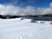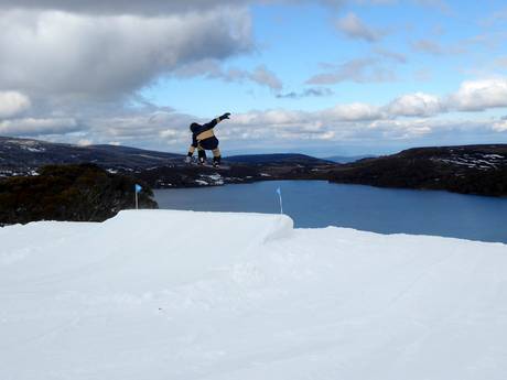 Das Skigebiet Falls Creek bietet eine Reihe von erstklassigen Snowparks. Die einzelnen Parks bieten einen herrlichen Blick auf den Rocky Valley Lake.