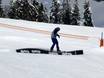Unterhalb der Sesselbahn Seebuck können sich Waghalsige im MINI Snowpark Feldberg auf zahlreichen Rails und Boxen so richtig austoben. Außerdem gibt es mehrere unterschiedlich große Kicker und Jumps. Auch für Snowparkneulinge gibt es im oberen Bereich des Parks passendes „Übungsgerät“.