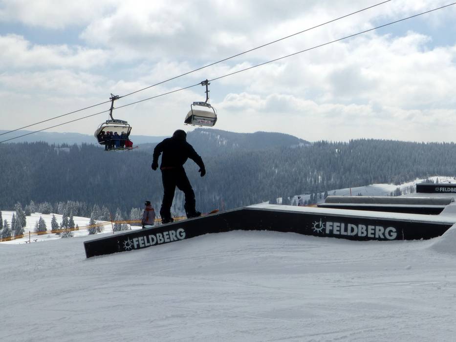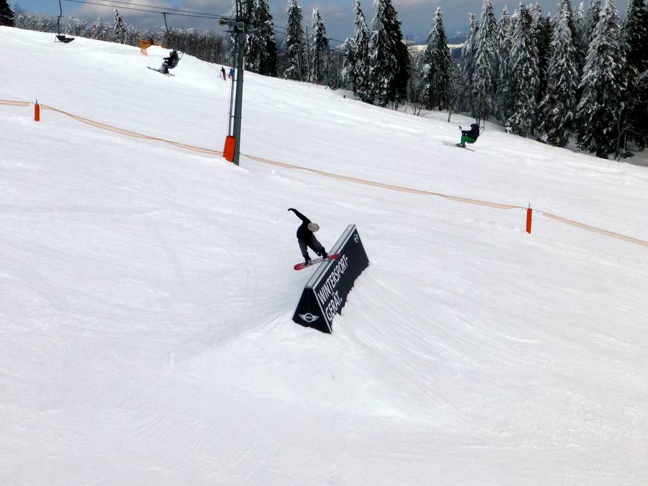Am Seebuck gelegen, bietet der MINI Snowpark Feldberg eine gute Auswahl verschiedener Obstacles und Kicker.