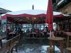 An beiden Talstationen kann man den Tag in Après-Ski-Schirmbars schön ausklingen lassen. Oben im Skigebiet stehen Skihütten und Bars mit Liegestühlen bereit.