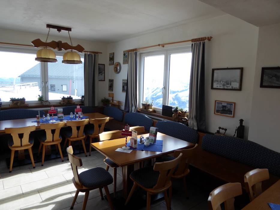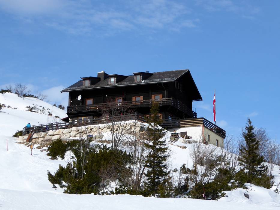 Die urige und gemütliche Hütte bietet eine Sonnenterrasse mit schönem Panoramablick. Bei kaltem Wetter wärmt der Kachelofen in der Stube. Es werden regionale Schmankerl angeboten.