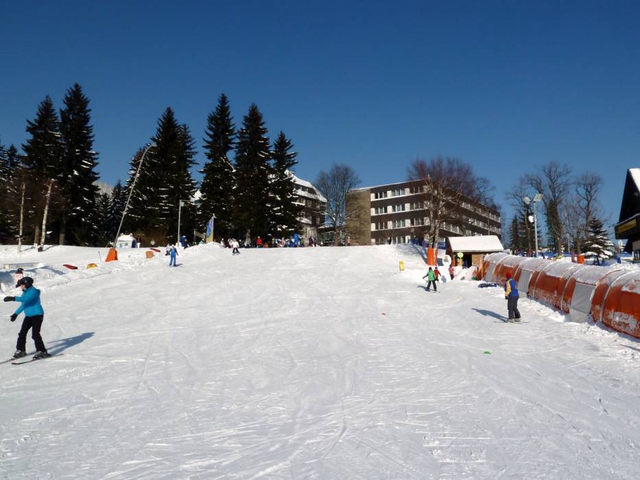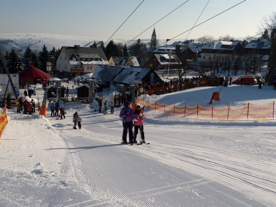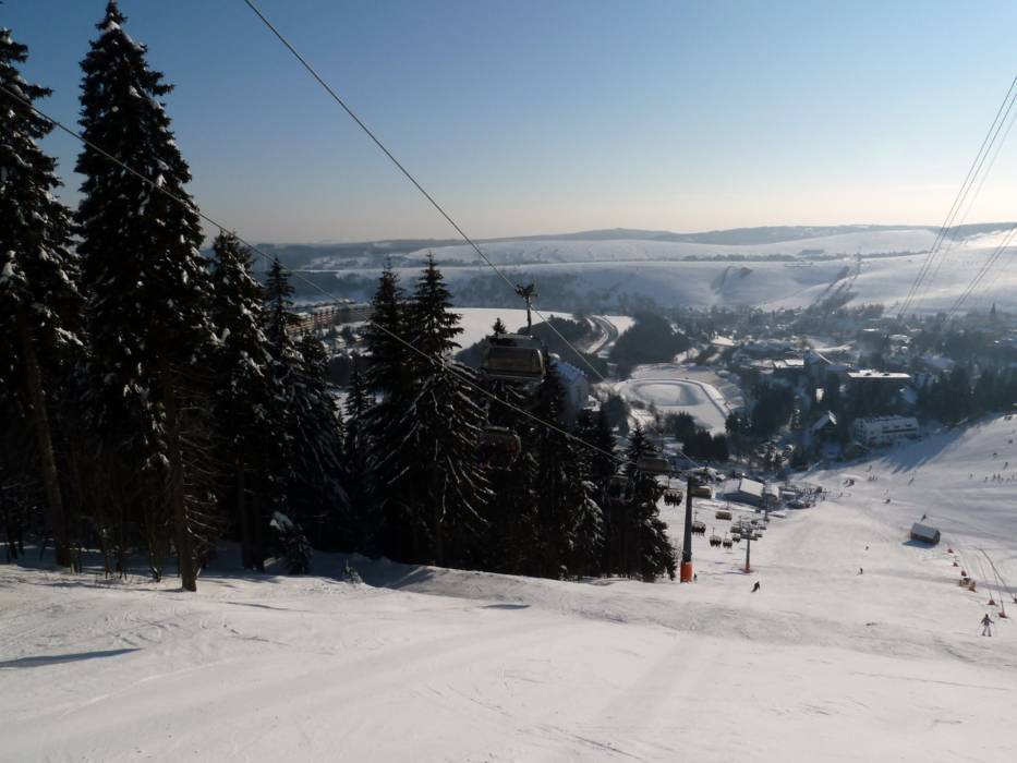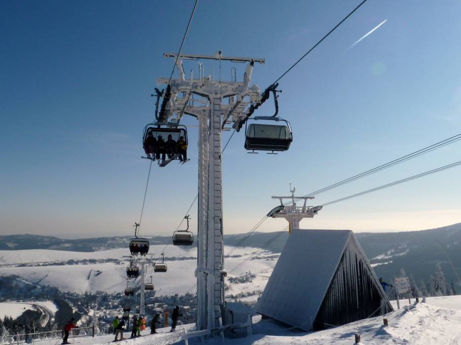 Das Skigebiet Fichtelberg liegt unmittelbar an der deutsch-tschechischen Grenze am Kurort Oberwiesenthal. Die Pisten zum Skifahren erstrecken sich über die Hänge des Kleinen Fichtelbergs (1.206 m) und des Fichtelbergs (1.215 m). Vom Kurort Oberwiesenthal, der höchstgelegenen Stadt weiterlesenDas Skigebiet Fichtelberg liegt unmittelbar an der deutsch-tschechischen Grenze am Kurort Oberwiesenthal. Die Pisten zum Skifahren erstrecken sich über die Hänge des Kleinen Fichtelbergs (1.206 m) und des Fichtelbergs (1.215 m). Vom Kurort Oberwiesenthal, der höchstgelegenen Stadt Deutschlands, befördert die älteste Schwebebahn Deutschlands die Gäste zum Skifahren auf den Berg. Alternativ fährt auch eine Sesselbahn zum Gipfel. Das Skigebiet bietet für die Jüngsten „Fichtelchens Winterland“ mit Skikarussell und Zauberteppichen. Die Wagemutigeren toben sich im Fun Park mit leichten Obstacles aus. Der Fichtelberg wird auch „Dach des Erzgebirges“ genannt.