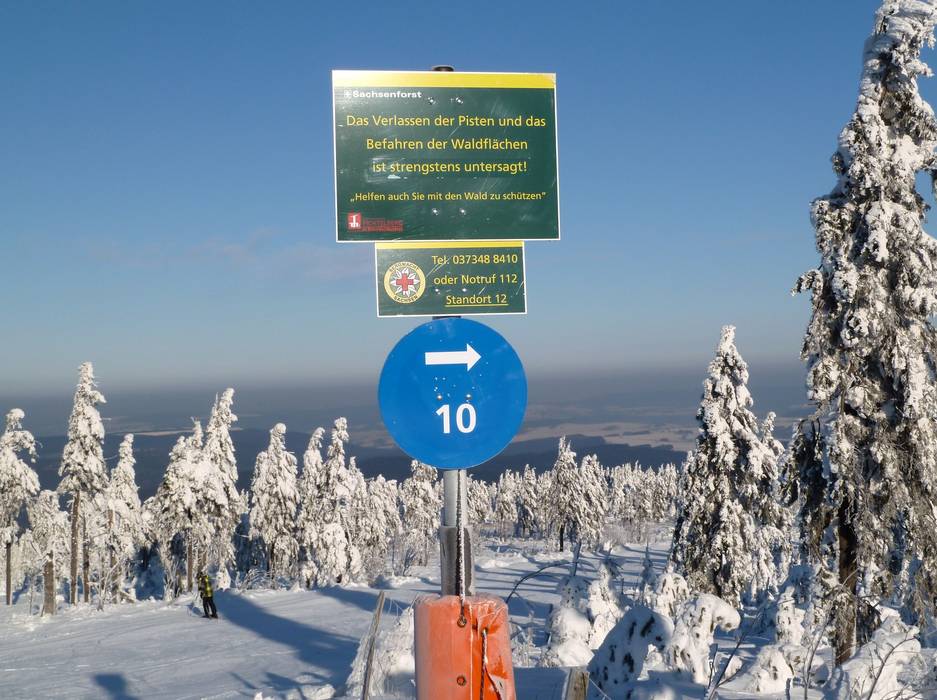 Orientierung (Pistenplan, Informationstafeln, Ausschilderung) und Sicherheit im Skigebiet Fichtelberg – Oberwiesenthal