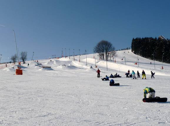 Im Skigebiet am Fichtelberg gibt es einen schönen Snowpark.