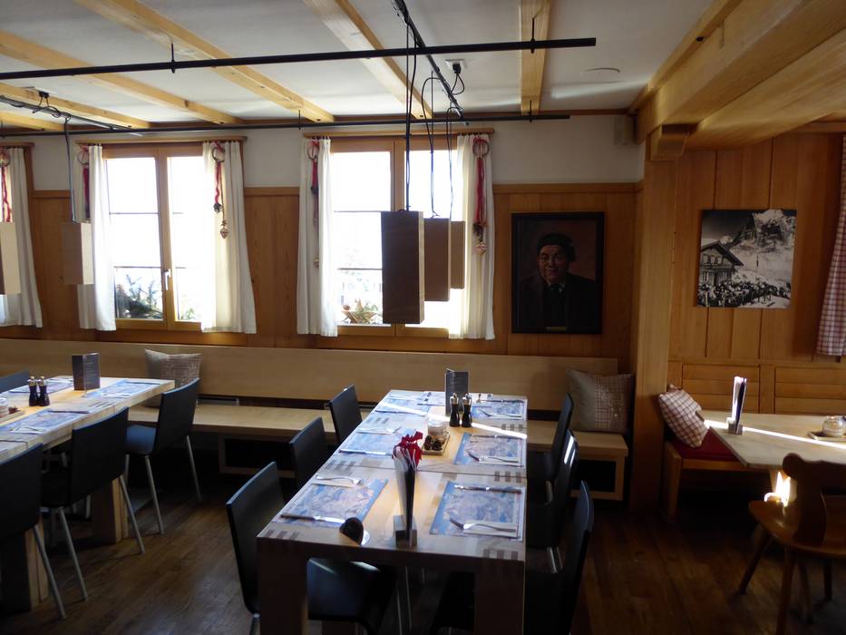 Das Berghaus Bort bietet saisonale und regionale Spezialitäten. Der Blick von der Sonnenterrasse auf die Berge der Jungfrau Region ist atemberaubend.