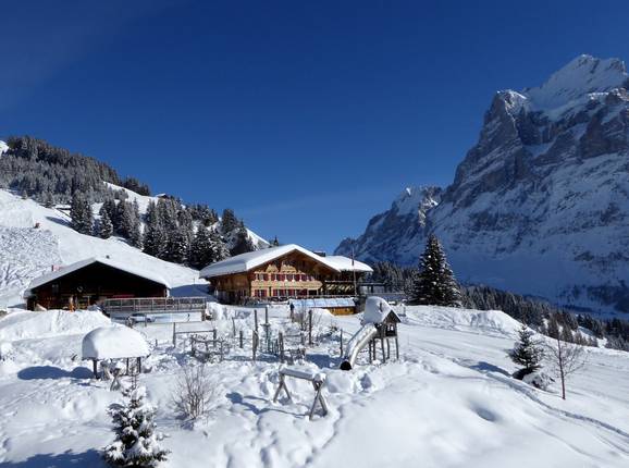 Rund um die Talstation in Grindelwald findet man ein umfangreiches Unterkunftsangebot. Mitten im Skigebiet kann man im Alpinhotel Bort, im Berggasthaus First oder im Hotel Bodmi übernachten. An den Talabfahrten findet man ebenfalls Unterkünfte. Diese erreicht man per Ski, muss aber mit dem Skibus zur Talstation fahren.