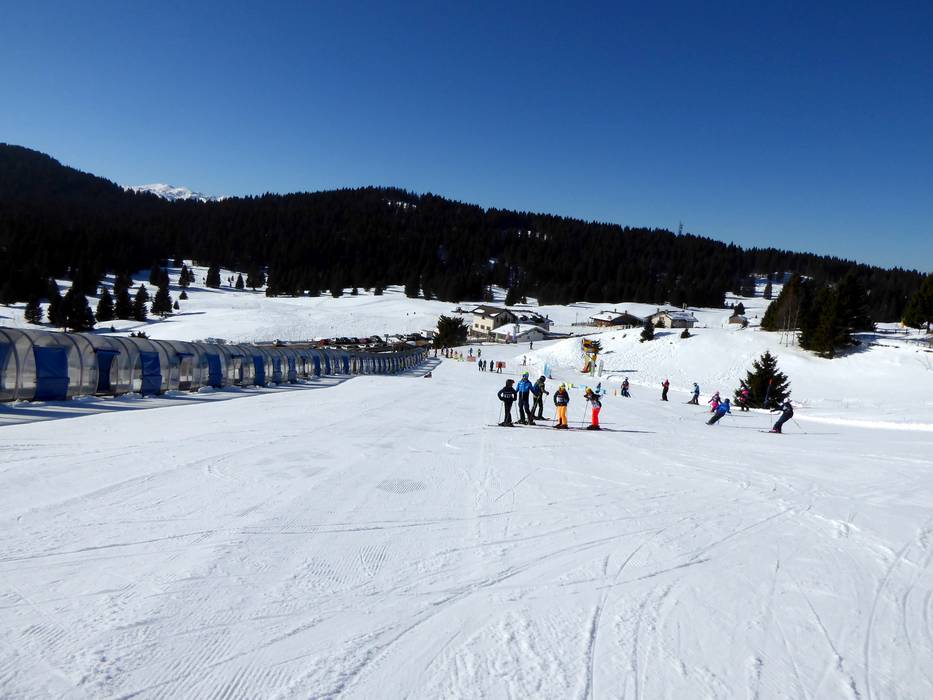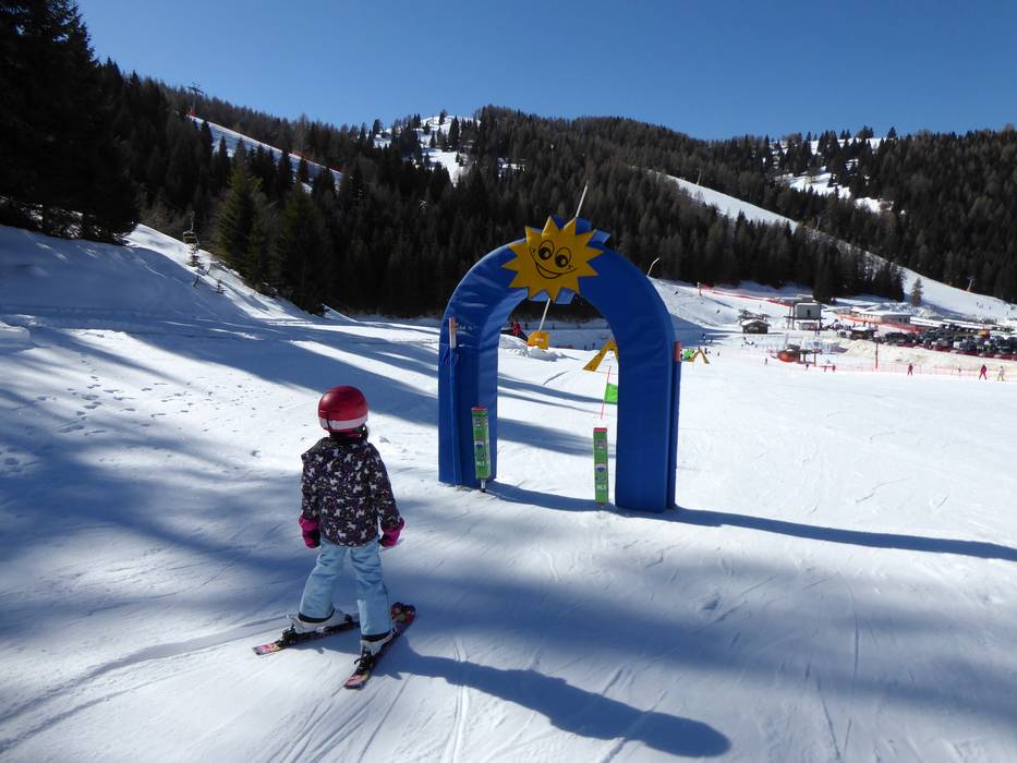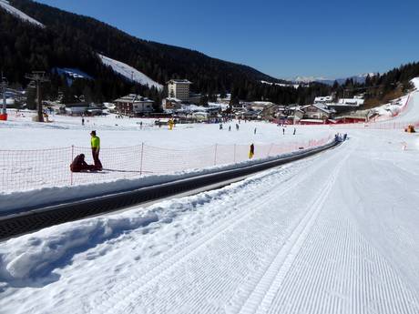 Am Passo Coe wartet eine Kinderpiste mit überdachtem Förderband. Hier üben die Skischulen mit den Kindern die ersten Schwünge. Zusätzlich gibt es den Kinderbetreuungsbereich "Casa di Smile".