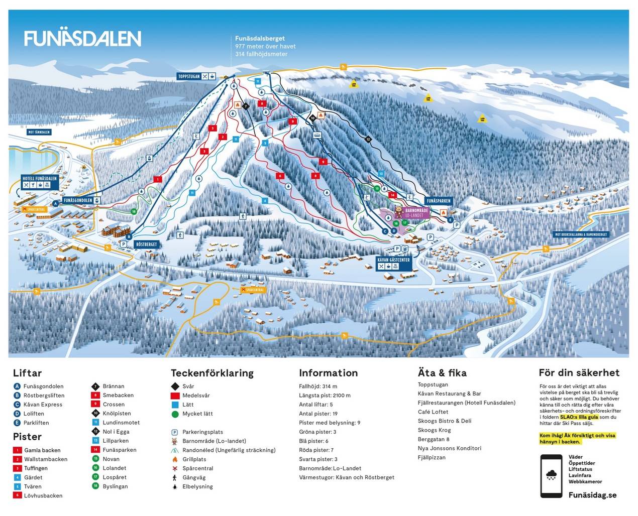 Orientierung (Pistenplan, Informationstafeln, Ausschilderung) und Sicherheit im Skigebiet Funäsdalsberget