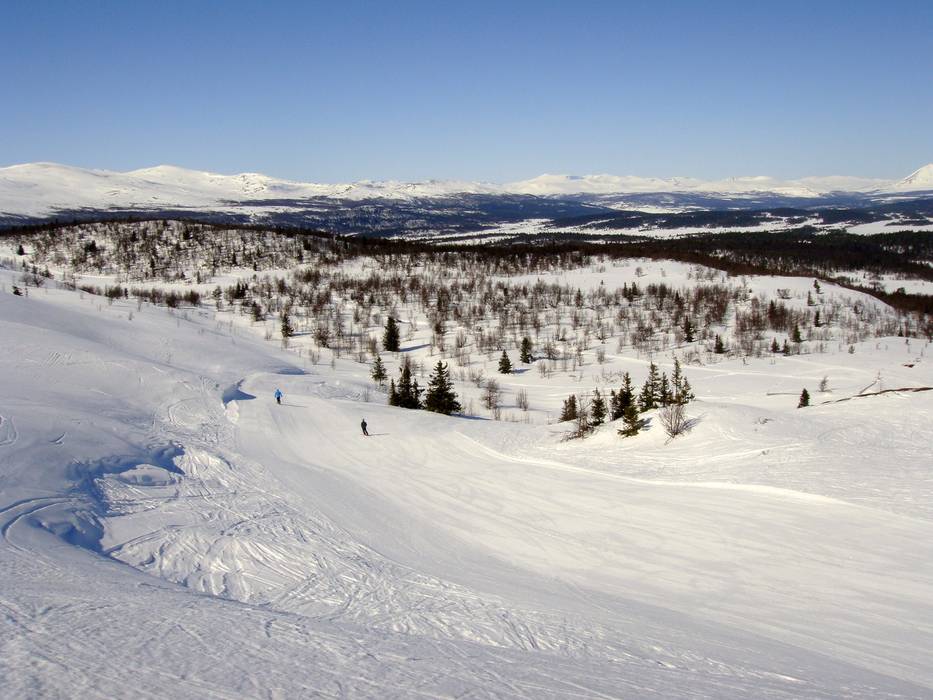 Der Schwerpunkt der Abfahrten in Gålå liegt auf leichten Pisten. Eine schwere und zwei mittelschwere Abfahrten ergänzen das Angebot. Die alpinen Pisten liegen wie eine Skischaukel auf beiden Talseiten und sind direkt miteinander verbunden.