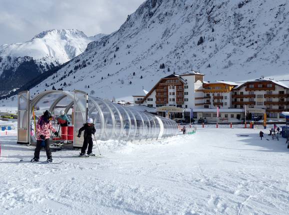 Direkt an der Talstation befindet sich ein großes und optimales Anfängergelände mit mehreren Förderbändern. Die Skischule Silvretta Galtür hat hier auch direkt ihr Büro. Direkt oberhalb des Anfängergeländes startet die Alpkogelbahn welche die leichte Familienabfahrt erschließt. Die weiteren Pisten in diesem Bereich sind mittelschwer, aber für fortgeschrittene Anfänger gut zu meistern. Es werden zudem spezielles Anfänger- und Wiedereinsteigerpackages angeboten.