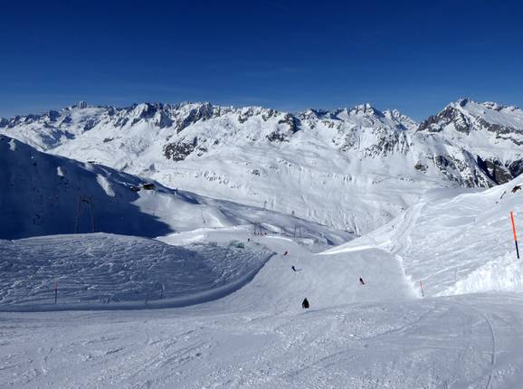 Pistenangebot, Variationen bei den Abfahrten im Skigebiet Gemsstock – Andermatt