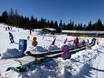 Das Kinderland Feuerberg liegt direkt am Mountain Resort Feuerberg. Neben einem Seillift gibt es auch ein Förderband und lustige Figuren. Die Ski- und Snowboardschule Gerlitzen Villach betreut.