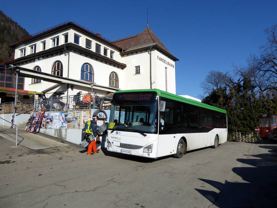 Der Bahnhof Annenheim liegt direkt an der Talstation der Kanzelbahn und ist per Regionalzug/S-Bahn an den Bahnhof Villach angeschlossen. - Skibusse