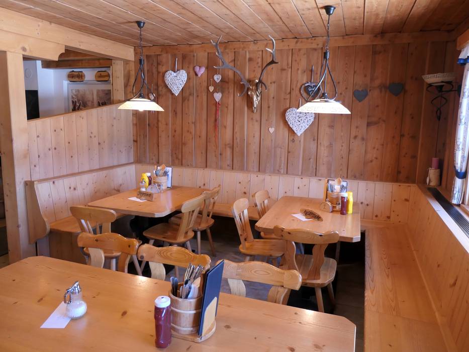 Die Gruber Alm ist sehr beliebt. Das hölzerne Achteck ist rustikal eingerichtet, rundum verglast und hat auch eine Sonnenterrasse. Verwöhnt wird mit Pizzen, Bratl, Schnitzel und Ripperl.