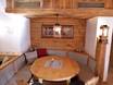 Gemütliche Hütte mit Südtiroler Spezialitäten. Am besten lässt man den Skitag am offenen Feuer bei einem Drink gemütlich ausklingen.