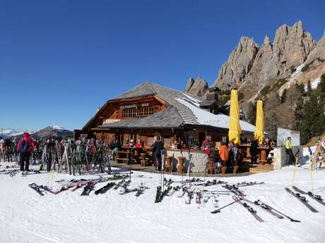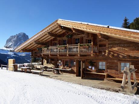Für das leibliche Wohl der Skisportler und den einen oder anderen Gaumenschmaus sorgen unzählige bewirtschaftete Hütten, die im gesamten Skigebiet verteilt sind. Meist sind die Hütten mit Bedienung und bieten qualitativ hochwertige Speisen. Die höchste Hüttendichte findet man am Seceda, dem sonnigen Genießerberg oberhalb von St. Christina.