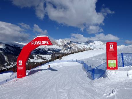 Das Skigebiet Gröden bietet mehrere Snowparks und Funslopes. Ein Boardercross am Piz Sella rundet das Angebot ab. Hier bleiben keine Wünsche offen.