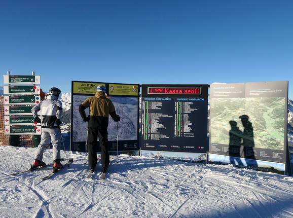 An den Talstationen und im Skigebiet findet man detaillierte Informationstafeln inklusive dem Öffnungsstatus der Pisten und Lifte. Alle Pisten sind gut beschildert und an den Abzweigungen stehen Schilder.