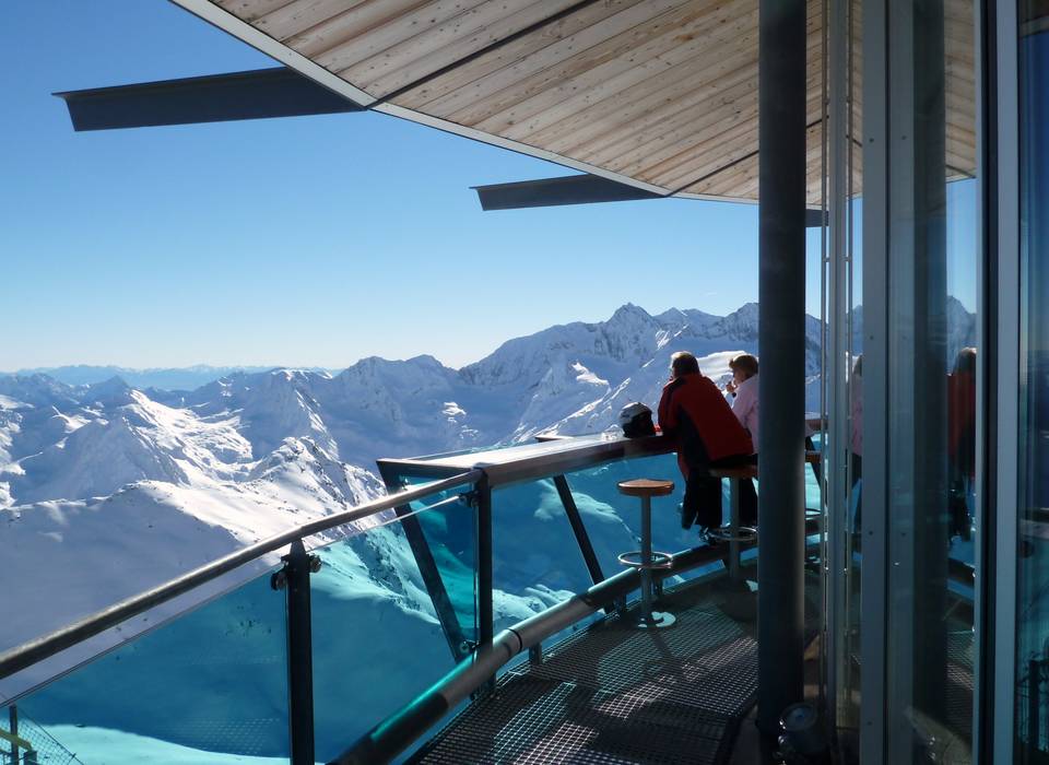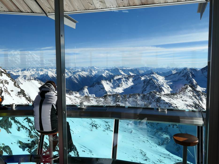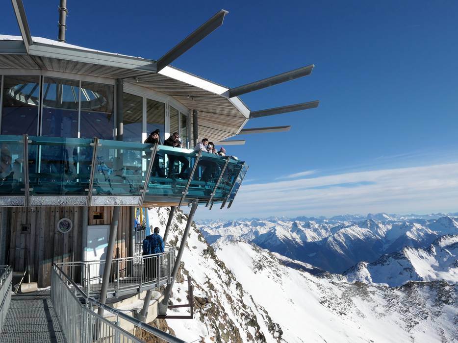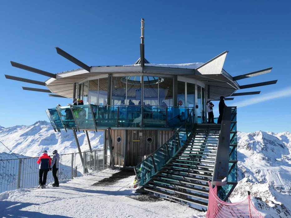 Am Wurmkogl ragt der Top Mountain Star in den Himmel. Eine Aussichtsplattform mit Panoramabar im futuristischen Look bietet Getränke und Leckereien. Hier findet man den wohl besten Ausblick im ganzen Skigebiet.