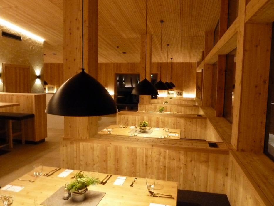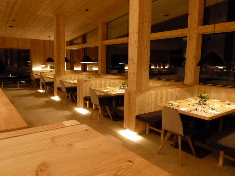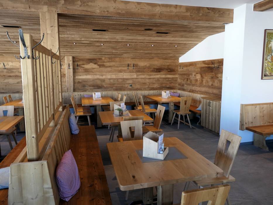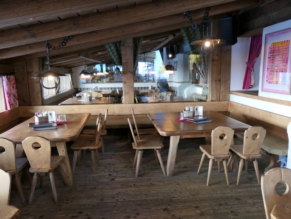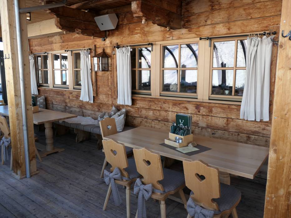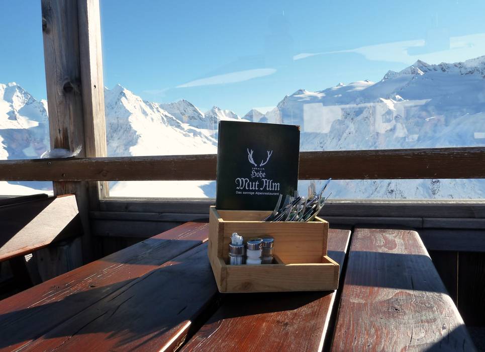 Das Bedienungsrestaurant am Bergrücken der Hohen Mut bietet Tiroler und internationale Spezialitäten auf höchstem Niveau. Viel Holz formt die gemütliche Hütte im Tiroler Stil mit je 200 Sitzplätzen im Restaurant und auf der Sonnenterrasse. Gemütliche Stuben, ein Weinkeller und eine Bar mit offenem Kamin schaffen ein Ambiente zum Wohlfühlen. Der Blick auf die umliegenden Berge ist grandios.